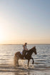 Feel the sea breeze as you ride along the golden sand at sunset. A magical experience on the Portuguese coast.